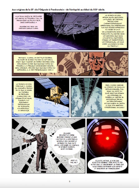 Cette bande dessinée documentaire retrace l’histoire de la science-fiction, narrée par un spécialiste du genre (auteur et libraire) guidant le lecteur au fil des pages. À travers un découpage chronologique en chapitres dédiés aux pères et mères fondateurs du genre, les auteurs mettent en scène la naissance des courants et thèmes incontournables (l’anticipation à la Verne, le voyage dans le temps de Wells, etc.) et les œuvres auxquelles ils ont donné naissance. Plus qu’un simple historique, cet ouvrage propose une véritable réflexion autour du genre.