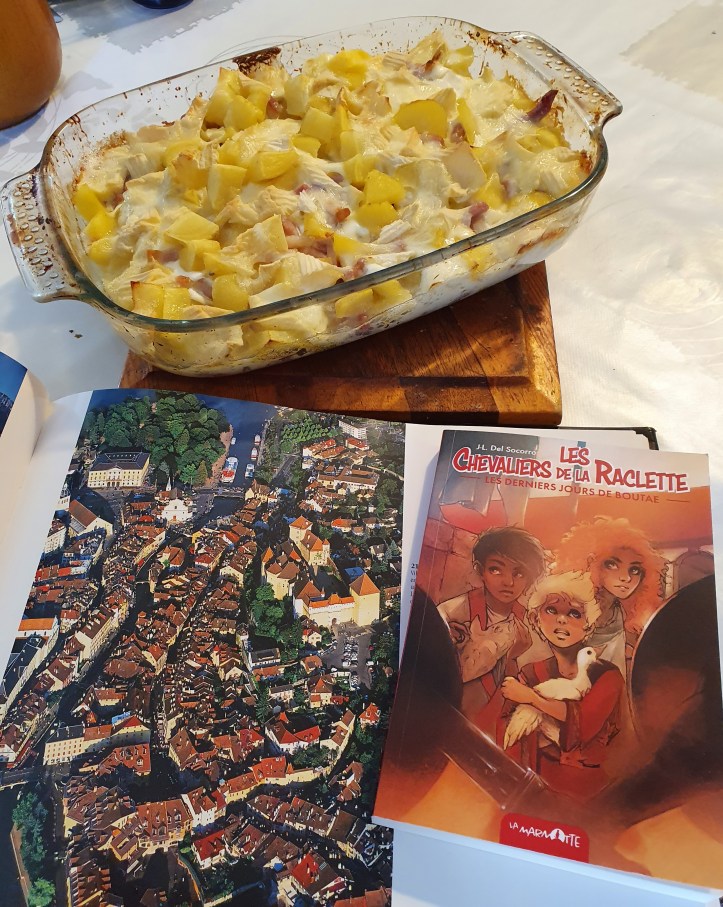 L’aspect historique est toujours très travaillé et on apprend pas mal de choses sur la ville d’Annecy. Je trouve cet aspect toujours très réussi dans cette série.Les enfants apprennent des éléments historiques tout en s’amusant. Même s’il y a toujours de l’humour, ce tome se fait un peu plus sombre dans ses thématiques abordant des sujets un peu plus difficiles pour les jeunes adolescents. En tout cas, mon fils était toujours autant pris par l’histoire, par l’humour, par la belle amitié entre les chevaliers de la raclette. Comme d’habitude la lecture a été rapide et fort plaisante pour nous deux. Nous en avons pas mal parlé après coup, envisageant de nombreuses hypothèses pour la suite que mon fils aimerait lire le plus rapidement possible.