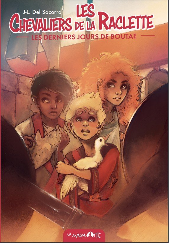 Les chevaliers de la raclette est une série jeunesse écrite à 4 mains par Jean-Laurent Del Socorro et Nadia Coste. Le premier tome est signé Jean-Laurent Del Socorro tandis que Nadia Coste a écrit les tomes 2 et 3. Les derniers jours de Boutae est le quatrième tome et il revient à Jean-Laurent Del Socorro. Cette série est notre petit plaisir à mon fils et moi. Il a pile la tranche d’âge requise pour ces livres et il attend chaque nouvelle parution avec impatience. On les lit ensemble et après il les relit tout seul. Ensuite on échange tous les deux sur ce qu’on en a pensé, nos hypothèses pour la suite, et j’écris ma chronique en lui faisant lire pour qu’il la valide. Un travail à 4 mains là aussi.