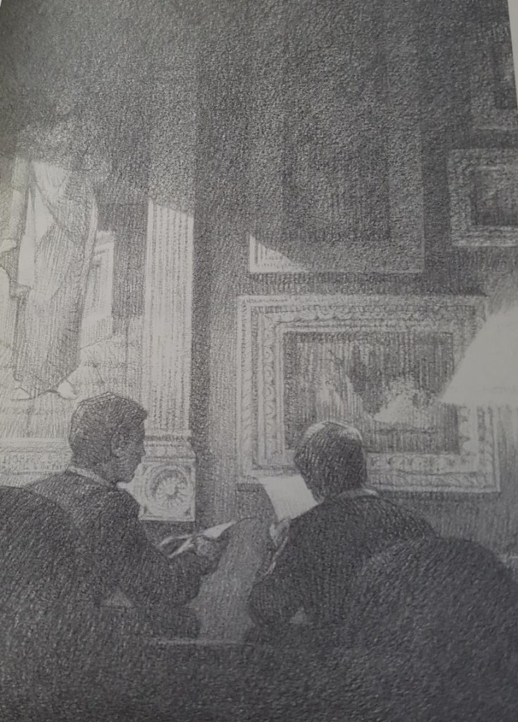 Les illustrations mettent en évidence l’aspect assez macabre du texte. On trouve par exemple des stèles renversées, des tombes, des morceaux de corps en décomposition. Mais on sent que Armel Gaulme s’est fait plaisir avec le fameux musée occulte des deux personnages. Ce musée a offert à l’illustrateur un grand nombre de possibilités créatives. Ces dessins font ressortir la noirceur du texte tout en le complétant. C’est une valeur ajoutée non négligeable au texte, et on imagine bien le potentiel qu’une telle technique pourrait avoir sur d’autres textes à venir. Le dessin est ici plus intéressant que dans Dagon que j’avais déjà lu, où le récit laissait peu de place à l’imagination et du coup le dessin était moins percutant.