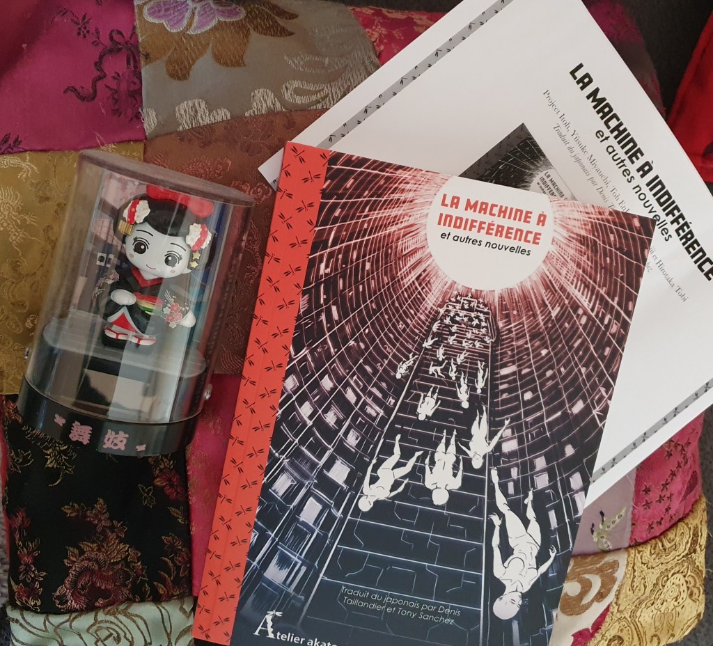 L’Atelier Akatombo est une maison d’édition spécialisée dans la traduction d’ouvrages japonais. En ce mois de mai, elle a ainsi décidé de publier la première anthologie de science-fiction japonaise traduite en français intitulée La Machine à indifférence et autres nouvelles. On y trouve cinq nouvelles d’auteurs japonais. Le livre est publié dans leur collection Science-fiction. La préface est signée Denis Taillandier et Takayuki Tatsumi se charge de la postface. Les traductions sont de Tony Sanchez et Denis Taillandier.