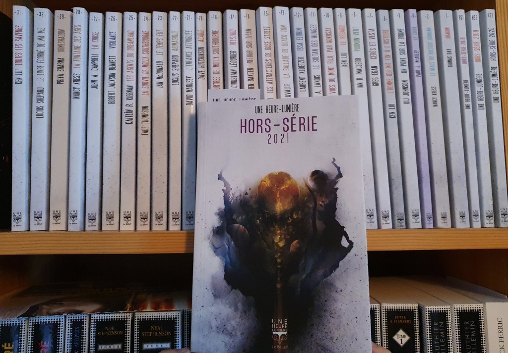 Pour la quatrième année consécutive, l’éditeur Le Bélial’ propose une opération spéciale concernant la collection Une heure Lumière: offrir le hors-série de l’année pour l’achat de deux livres au format papier faisant partie de la dite collection. Le Hors-série contenait une nouvelle de Ken Liu en 2018, de Ian R. MacLeod en 2019, de Kij Johnson en 2020. Pour la cuvée 2021, le choix d’Olivier Girard s’est porté sur un auteur phare du Bélial’ : Greg Egan, avec un texte intitulé Le château sous la mer. On retrouve une introduction signée du big boss et un catalogue de tous les UHL parus depuis les débuts et un petit bonus des titres à paraitre.
