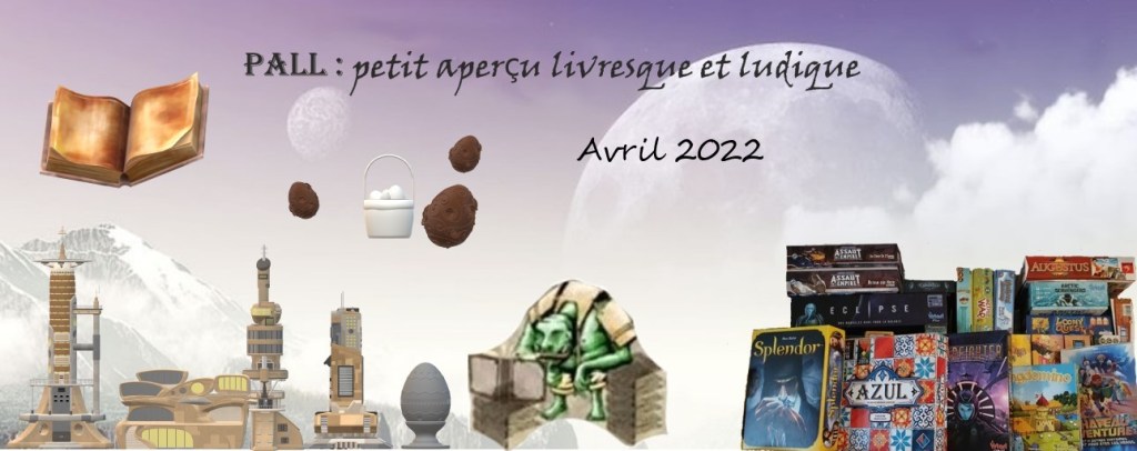Rendez-vous mensuel de fin de mois sur le blog: Petit Aperçu Livresque et Ludique du mois. Ce PALL a pour but de faire un petit condensé du mois écoulé. Voici celui du mois d’avril, où les lapins ou les cloches selon les endroits ont amené plein de chocolat. Chez les trolls des cavernes, on reçoit des menhirs en chocolat, c’est très bon bien qu’un peu dur parfois. Ils sont apportés par un petit gobelin facétieux. Ce fut aussi l’occasion de quelques jours de vacances en région Parisienne et la capitale pour des trolls des cavernes, c’est toute une expédition!