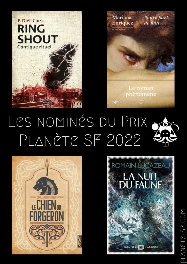 ֎ Planète-SF est une communauté de blogueurs et de lecteurs de l’imaginaire. Depuis 2011, le Prix Planète SF récompense un roman du genre. Pour cela, les blogueurs choisissent un roman parmi ceux parus dans l’année et le jury en sélectionne 3 autres. En 2021, c’est le roman Aucune terre n’est promise de Lavie Tidhar chez Mu Editions qui avait obtenu le prix. Les 4 romans en lice pour le prix 2022 sont: