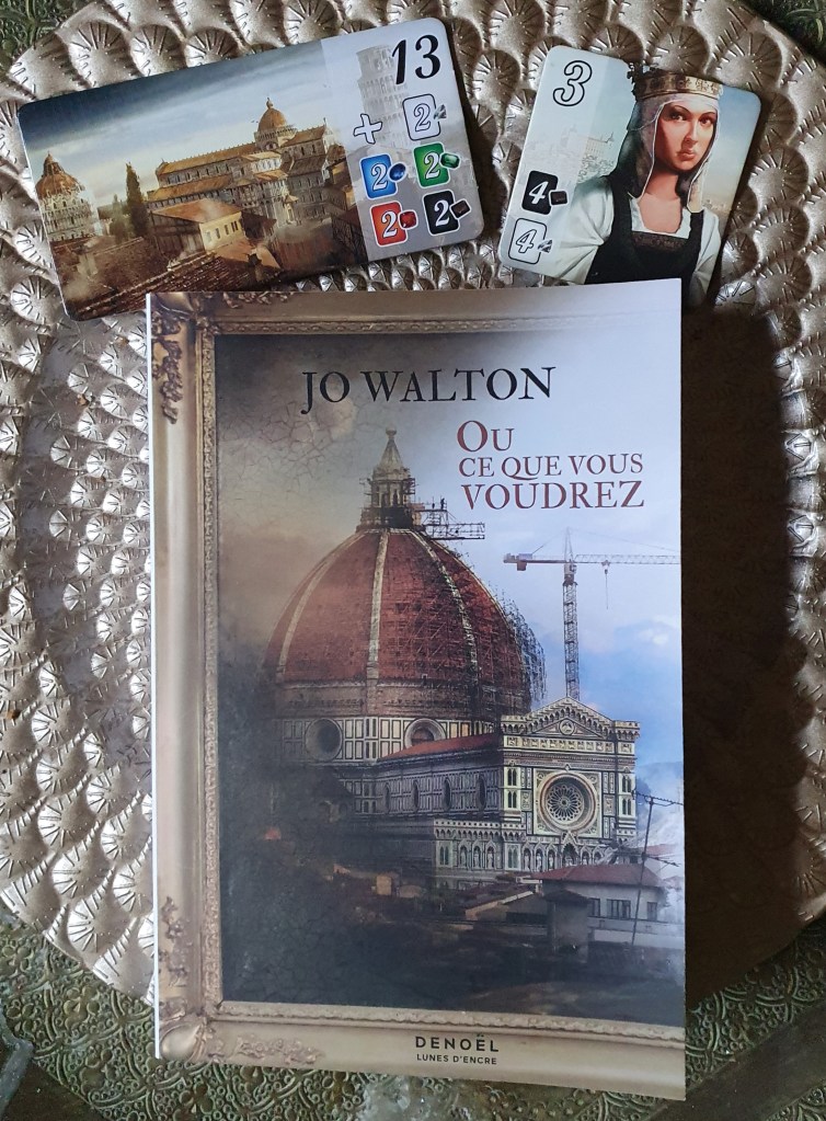 Ou ce que vous voudrez est un roman de Jo Walton publié chez Denoël collection Lunes d’Encre en septembre 2022. La traduction est de Florence Dolisi. Le roman est paru en 2020 sous le titre Or what you will. C’est un roman plutôt inclassable qui nous fait voyager à florence entre le présent et un monde imaginaire. La superbe couverture est signée Aurélien Police.