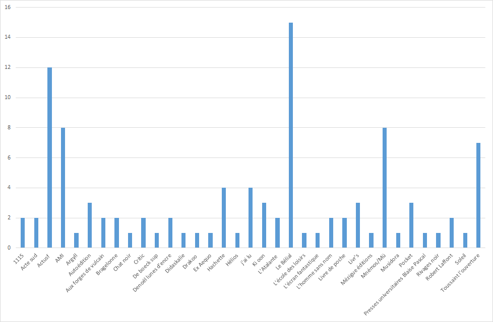 L’éditeur le plus lu est Le Bélial’, suivi par Actusf, Albin Michel Imaginaire et Mnémos/Mü