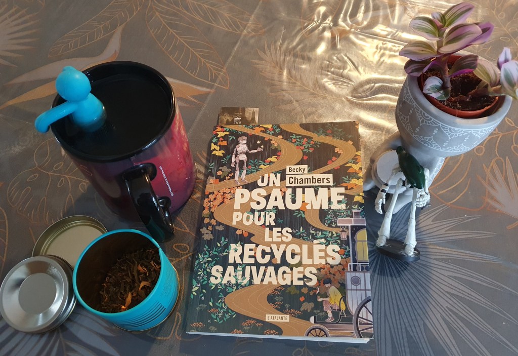 J’avais beaucoup aimé Apprendre, si par bonheur , une novella de Becky Chambers. J’avais préféré l’autrice sur la forme courte plus que sur les romans. A l’occasion d’un tour en librairie, j’ai craqué pour son nouveau roman court publié lors de la rentrée littéraire de septembre dernier chez l’Atalante, qui a publié tous les textes de l’autrice en France. Un psaume pour les recyclés sauvages a remporté le prix Hugo 2022 du meilleur texte court. Ce roman fait partie du sous-genre de la science-fiction positive, avec une superbe dédicace en début de livre « Pour vous qui avez besoin de souffler« .